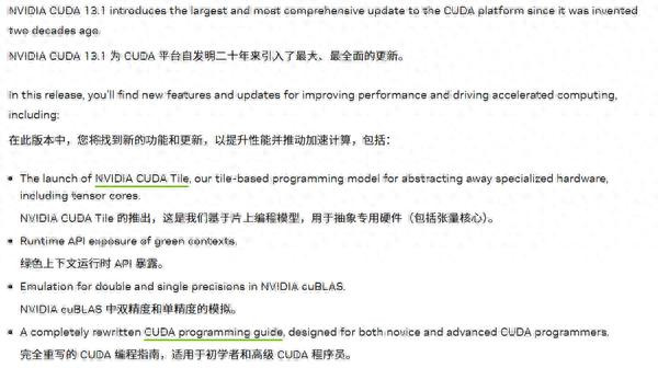 此次更新的核心亮点,是引入了革命性的CUDA Tile编程模型,标志着GPU编程范式迈入一个新的、更高抽象的阶段。
