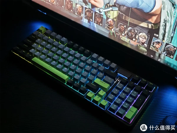 键帽采用高含量PBT材质,搭配双色注塑工艺打造,表面带有细腻磨砂质感,触感干爽不粘手,既提升了打字时的握持舒适度,又具备超强耐磨性,有效避免长期使用后出现键帽打油、字迹模糊的问题,长久使用依旧保持洁净清爽的质感。