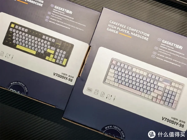 雷柏V700DIY-98长续航版-三模客制化无线机械键盘V700DIY-98长续航版三模客制化无线机械键盘延续了雷柏家族式的电竞设计语言,包装整体线条利落,撞色拼接的色彩搭配极具张力,打破单调感,精准契合电竞玩家的审美偏好,一眼就能抓住注意力。